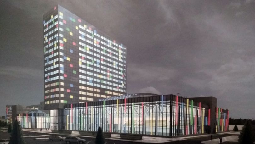 Как рассказала главный архитектор проекта Марина Казанцева, проект намечено реализовать на участке площадью 22,5 тыс. кв. м на пересечении проспектов Энгельса и Суздальского. По задумке разработчиков, объект будет состоять из трех основных частей: комплекса, включающего пять бассейнов (два 50-метровых, олимпийского формата; два – 25-метровых, тренировочный и детский; и один – небольшой, для мам с грудничками), 7-уровневого паркинга на 394 машино-места и 19-этажной многофункциональной башни. Общая площадь здания – более 64 тыс. кв. м, высота – 75 м (для обеспечения возможности появления в локации такой доминанты у Градсовета запрашивается разрешение на отклонение от стандартной высоты в 40 м). Площадь озеленения составит 4,4 тыс. кв. м, планируется создание велопарковки на 138 мест.