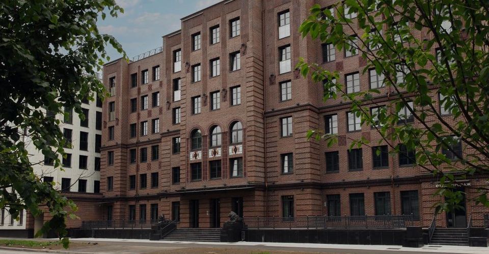 Несмотря на неизбежную в этом случае архитектурную эклектику, здание предстает стилистически очень цельным. Эффект достигается, в том числе, благодаря одноцветному бетонному клинкеру на фасаде, что придает строению респектабельность и устойчивость. Технологически клинкерная кладка является наружным слоем навесного фасада, однако при ее устройстве использовано множество приемов, которые в таком разнообразии одновременно встречаются нечасто: утолщенный клинкер, рустирование, пояса, таблероны и другие. Красное кирпичное здание выглядит лаконично и дорого, но при этом уживается с разнородными соседями — массивной «сталинкой», пятиэтажкой и даже с ЖК Amo напротив, который в свою очередь перекликается со ар-деко орнаментом фасадов.