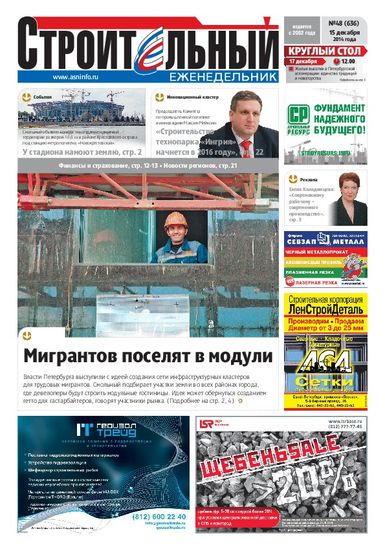 Редакция газеты «Строительный Еженедельник» и портала «АСН-инфо» ответственности за материалы, публикуемые в данных разделах, не несет.