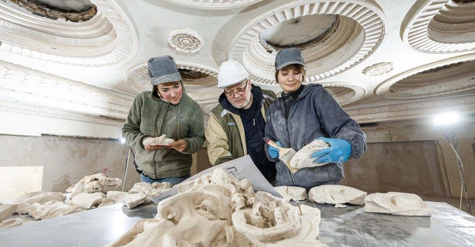 «Мы ожидаем, что это не единственные уцелевшие части барельефа — в ходе работ могут найтись другие фрагменты утраченного декора. Лепнина Дома Радио заслуживает отдельного научного исследования: она отражает смену эпох и стилей в оформлении здания. Нам известно, что в советское время над Третьей студией работал архитектор Лазарь Хидекель, создавший новый барельеф. К сожалению, он тоже утрачен и пока не обнаружен», — рассказала Мария Шапченко, архитектор проекта, руководитель АРМ2 ООО «НИиПИ Спецреставрация».