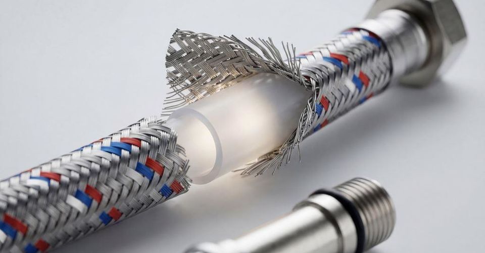 Оплетка выполнена из нержавеющей стали AISI 304, что защищает подводку от механических нагрузок и коррозии. Эластичность внутреннего слоя снижает нагрузку на соединения и повышает надежность системы.
