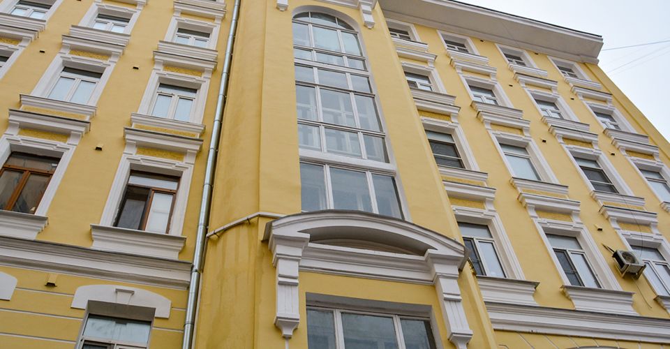 На завершающей стадии обновили штукатурный слой и нанесли современную краску на акриловой основе, которая устойчива к меняющимся погодным условиям. Кроме того, обновили цоколь дома, откосы и подъездные козырьки, заменили водосточные трубы и отливы. После завершения всех работ дом более чем со столетней историей получил вторую жизнь.