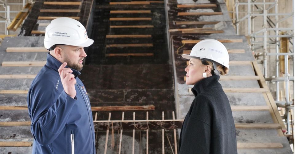 В ходе своего рабочего визита руководитель учреждения Юлия Алейникова посетила строительную площадку и осмотрела возведенный монолитный каркас здания, а также модель фасада.