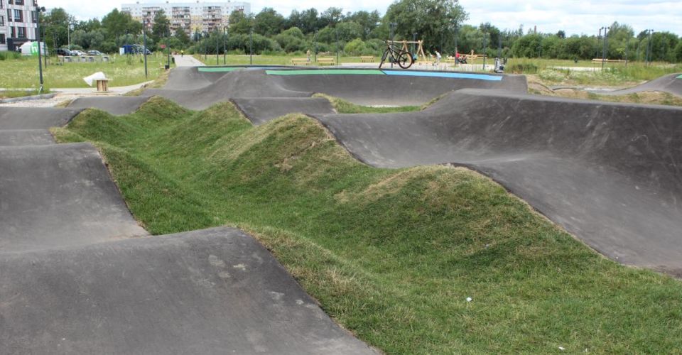 Эти работы выполняют в рамках второго этапа благоустройства парка. На памп-треке смогут тренироваться на трюковых самокатах и велосипедах. Сейчас подрядчик выполняет устройство освещения дорожек, ведущих к памп-треку, и самих дорожек.