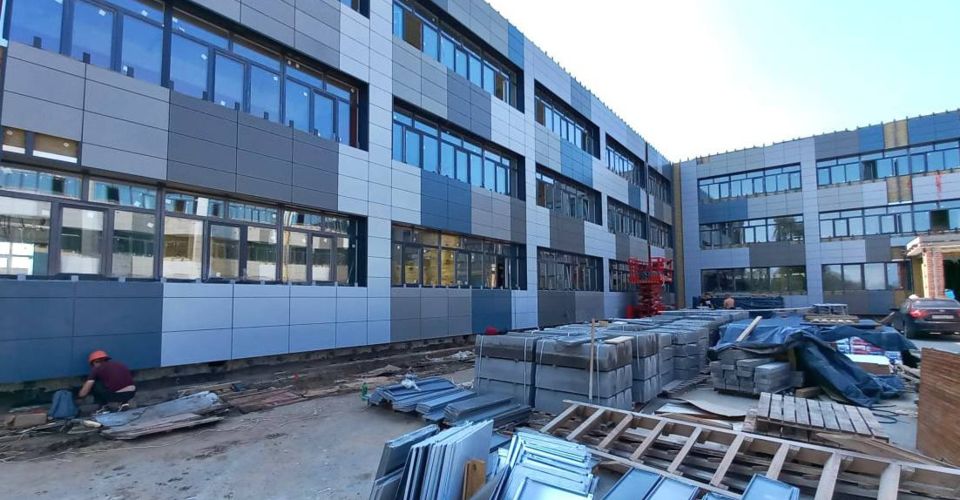 В настоящее время на объекте более 70 рабочих и 4 единицы техники. Завершается чистовая отделка помещений: покраска стен, укладка плитки, устройство потолков и полов. Ведется монтаж фасада и устройство инженерных сетей. Рабочие приступили к благоустройству прилегающей территории.
