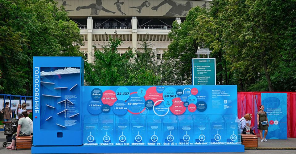 На территории олимпийского комплекса «Лужники», где проходит фестиваль городского хозяйства, установлена инсталляция с прозрачными колбами. Каждая из них символизирует один из аспектов жизни в городе: благоустроенные общественные пространства, парки и улицы, бесперебойное ресурсоснабжение, благоприятную экологическую обстановку и другие. Москвичи могут проголосовать, опустив шарик в соответствующую колбу.