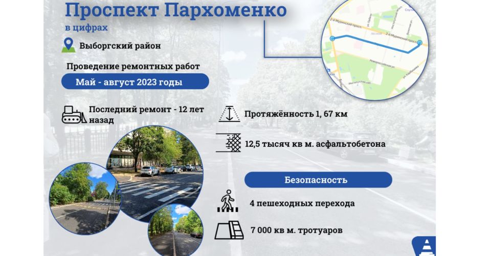 Проспект Пархоменко в Выборгском районе отремонтировали по поручению губернатора Александра Беглова, которое он дал по итогам личного приема граждан.