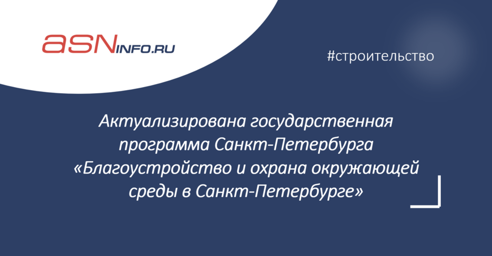 Внесены изменения в постановление Правительства Санкт‑Петербурга «О государственной программе Санкт‑Петербурга «Благоустройство и охрана окружающей среды в Санкт‑Петербурге».