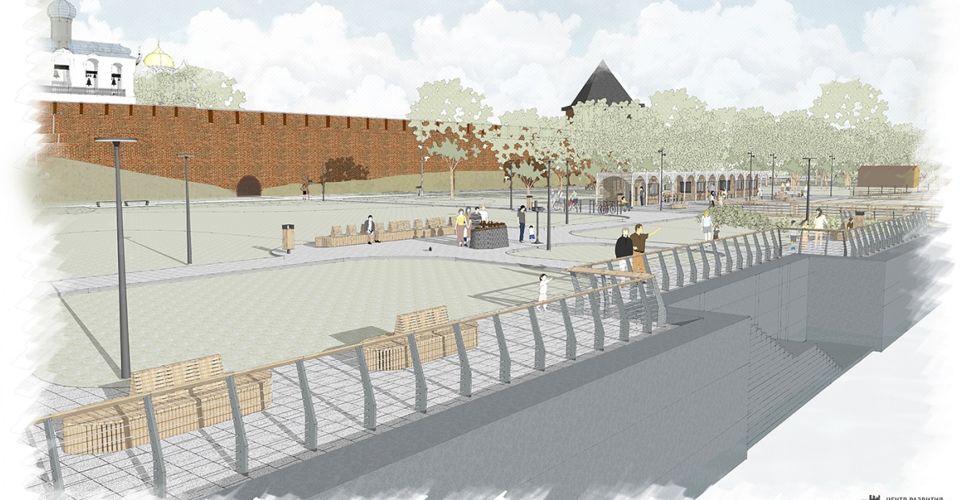 Центр развития городской среды Новгородской области разработал концепцию благоустройства Софийской набережной на участке между мостом Александра Невского и пешеходным мостом.