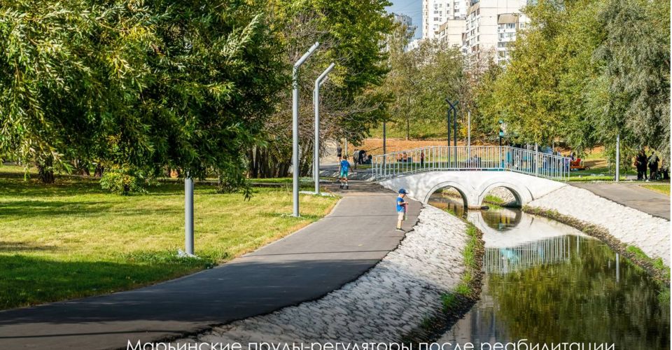 В районе Марьино завершены основные работы по благоустройству территорий, расположенных рядом с 16 прудами-регуляторами.