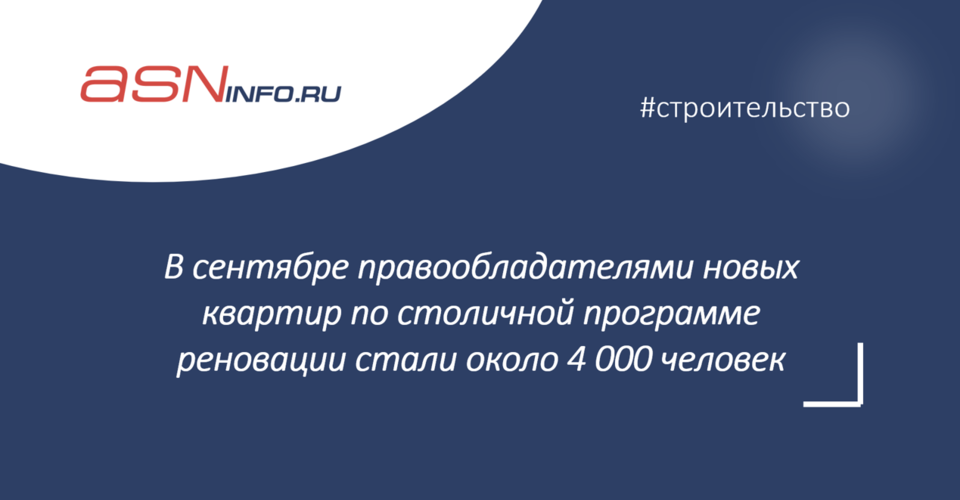 В сентябре ключи от новых квартир по программе реновации получили около четырех тысяч жителей 192 старых домов.