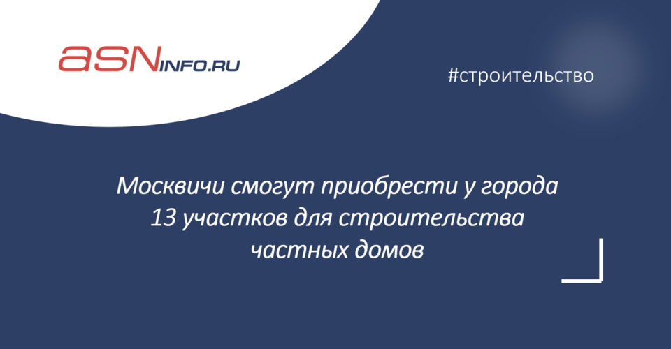 Жители столицы смогут приобрести 13 земельных участков для строительства частных домов в Троицком и Новомосковском административных округах (ТиНАО), а также на северо-западе города.