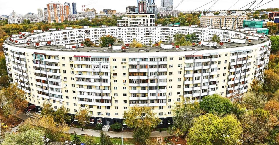 Дом необычной формы был построен в 1976 году. В нем 26 подъездов и более 900 квартир. Диаметр круглого дома — 155 метров.
