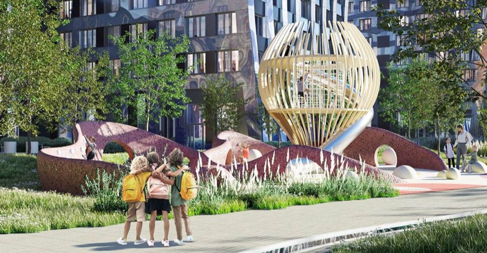 На территории создадут парк площадью более двух гектаров — обширную зеленую зону по образу Центрального парка в Нью-Йорке. Он будет гармонично сочетать в себе высотные здания и растительное пространство. Центральным элементом станет искусственная река, которая станет наполняться водой только во время дождя. Здесь появятся уютные зоны для отдыха, тематические детские и спортивные площадки.