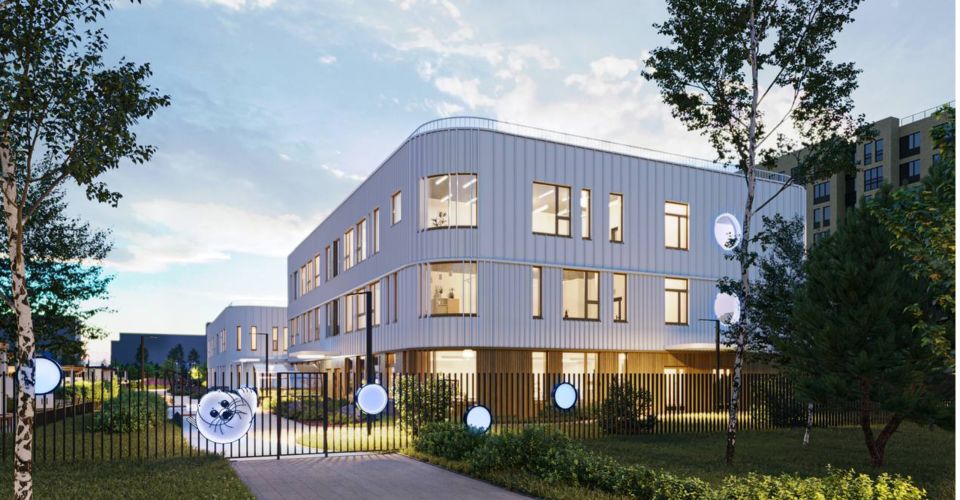 Детский садик рассчитан на 10 групп, включая две ясельные на 40 малышей. Предусмотрены кружковые комнаты, физкультурный и музыкальный залы, медицинский блок, колясочная, зал коррекционно-развивающих занятий, собственный пищеблок, помещение сенсорной разгрузки, музей.
