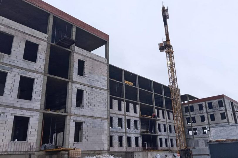 Строители кировской поликлиники на Советской улице заводят здание под кровлю и кладут внутренние перегородки, чтобы разделить кабинеты терапевта, хирурга, гинеколога, стоматолога, физиотерапевта, стационар и экстренную помощь.