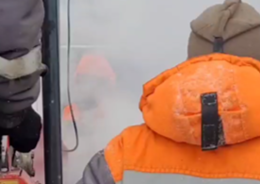 Сегодня специалисты укладывают литой асфальтобетон в районе трамвайных путей. Температура укладываемого материала - больше 200°C, поэтому влага испаряется мгновенно. Предварительно дорожники расчищают поверхность и обрабатывают её битумным праймером для лучшего сцепления асфальта с основанием дороги.