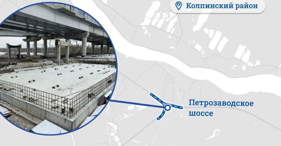В рамках реконструкции Петрозаводского шоссе в Колпинском районе продолжается строительство надземного пешеходного перехода.