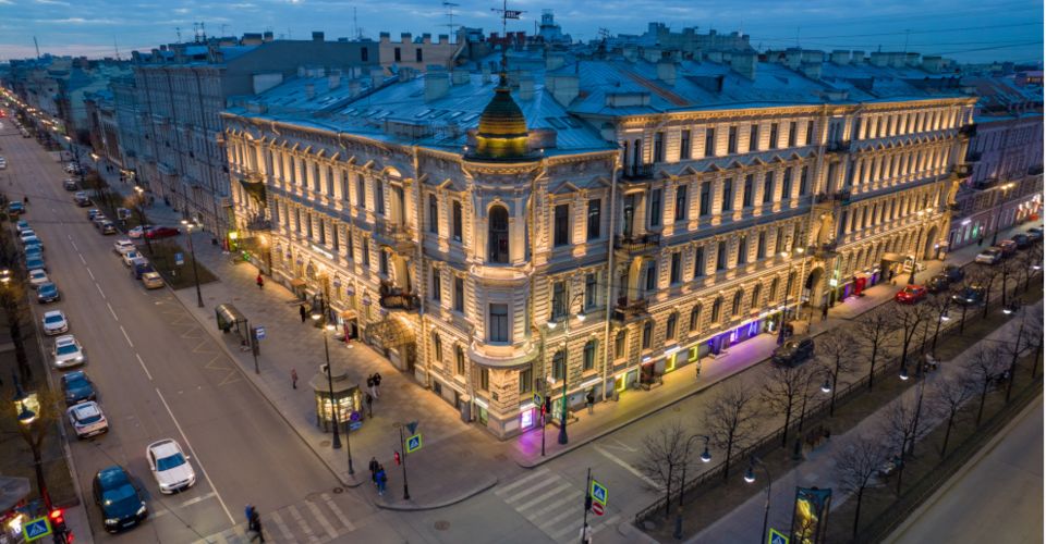 Архитектурно-художественная подсветка доходного дома Петра Вейнера, расположенного на углу улиц Чайковского и проспекта Чернышевского, подключена к линиям наружного освещения «Ленсвета».