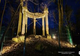 В парке посёлка Сосновка Зеленоградского округа появилась фоновая подсветка у руин ротонды имения Бледау.