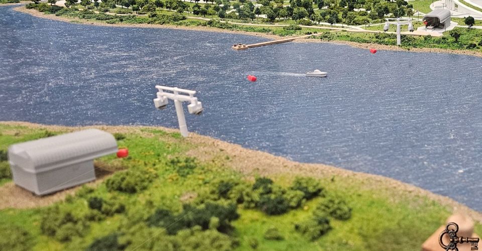 Приводную станцию с мотором строят на левом берегу Волхова у ИНТЦ. На правом берегу у Студенческой улицы будет натяжная обводная станция. Между станциями на фундаментах установят четыре линейные опоры разной высоты и конструкции. Кабинки будут висеть на высоте максимум около 30 метров от земли.