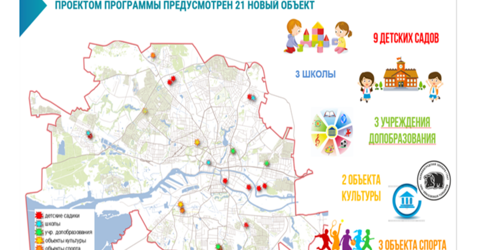 В программу включено строительство новых дошкольных образовательных учреждений, среди которых: