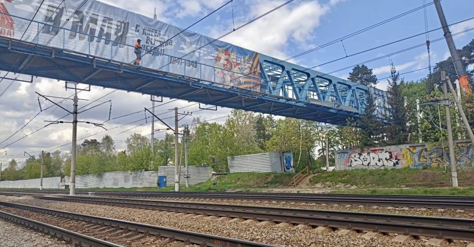 В Люберцах продолжается строительство нового надземного пешеходного перехода через железнодорожные пути, который расположен между станциями Малаховка и Красково.