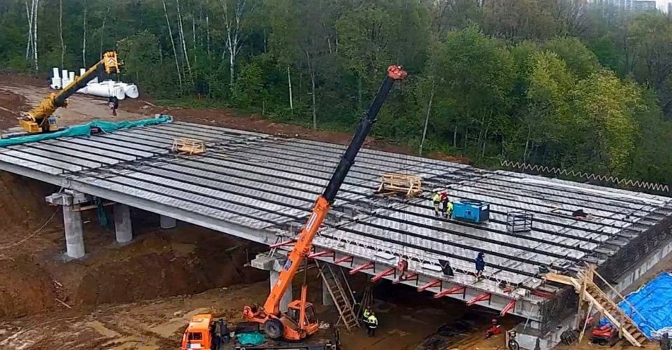 Дорожники завершили монтаж балок пролетного строения моста через реку Журавку в рамках строительства дороги «Путилково-Пятницкое шоссе» в городском округе Красногорск.