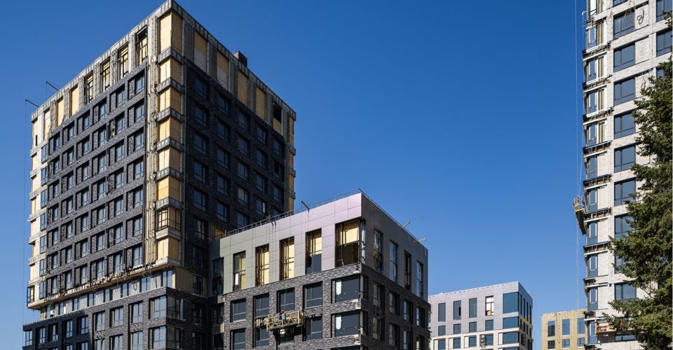 К некоторым корпусам пристроят двухэтажные секции. Они сыграют как коммерческую, так и архитектурную роль: ребристые фасады пристроек в сочетании с масштабным панорамным остеклением от пола до потолка выступят в качестве противовеса вертикальной направленности жилых зданий.