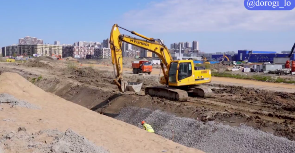 рабочие в рамках 1-го этапа строят новую дорогу от КАД, которая в будущем соединится с трассой СПб – Матокса