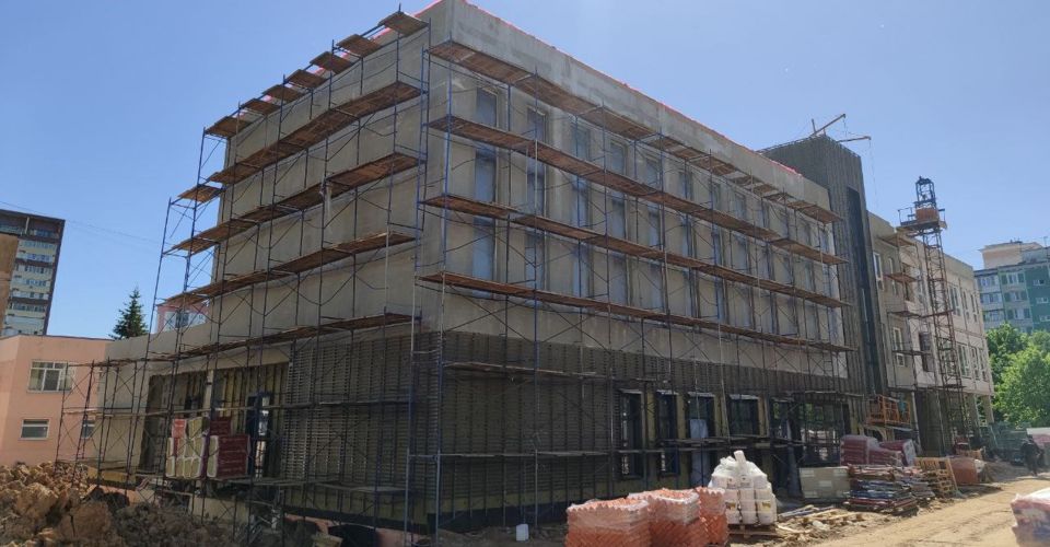 «На площадке 75 рабочих и три единицы техники. Строители ведут фасадные работы, внутри здания подготовку стен под окраску, укладку плитки, монтаж подвесных потолков, устройство инженерных сетей. Строители приступили к монтажу лифтового оборудования и установке дверных блоков», — говорится в сообщении.