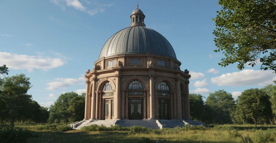 Сейчас завершается монтаж кровли и центрального барабана. Два малых купола почти смонтированы.