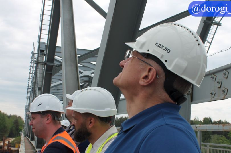 Председатель комитета по дорожному хозяйству Денис Седов и руководитель «Дирекции дорожного строительства» Дмитрий Донской проинспектировали ход капремонта моста через реку Луга в Кингисеппском районе.