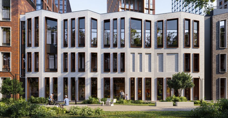«Здание образовательного комплекса будет состоять из трех частей: четырехэтажного и двух трехэтажных корпусов. Каждый из них оформят клинкерной плиткой разного цвета – коричневой, белой и серой. Благодаря этому, а также треугольным эркерам и большому количеству остекления получится сложная игра объемов. Она раскроет архитектуру по-новому с разных ракурсов», – сказал Сергей Кузнецов.