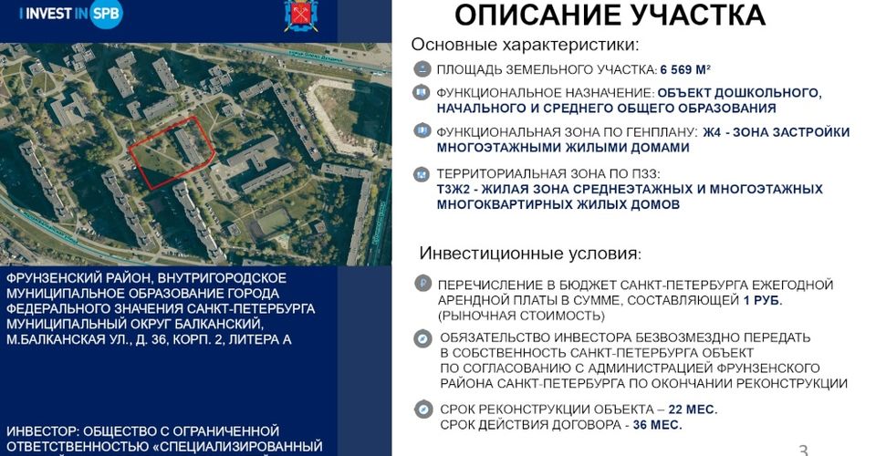 «Инвестор реконструирует старое здание и создаст в нем современный детский сад на 160 мест. Затем объект безвозмездно передадут городу», – отметил Александр Беглов.