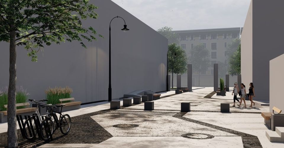 В частности, будут созданы пешеходных дорожек общей площадью примерно 2000 кв.м., покрытых плиткой высокого качества с добавлением гранитной крошки, высажены 6 клёнов, произведен монтаж современного городского оборудования — детских качелей, удобных лавочек, урн и ограждающих столбиков, а также установка велосипедных стоянок и добавление эстетичных декораций для улучшения визуального восприятия пространства.