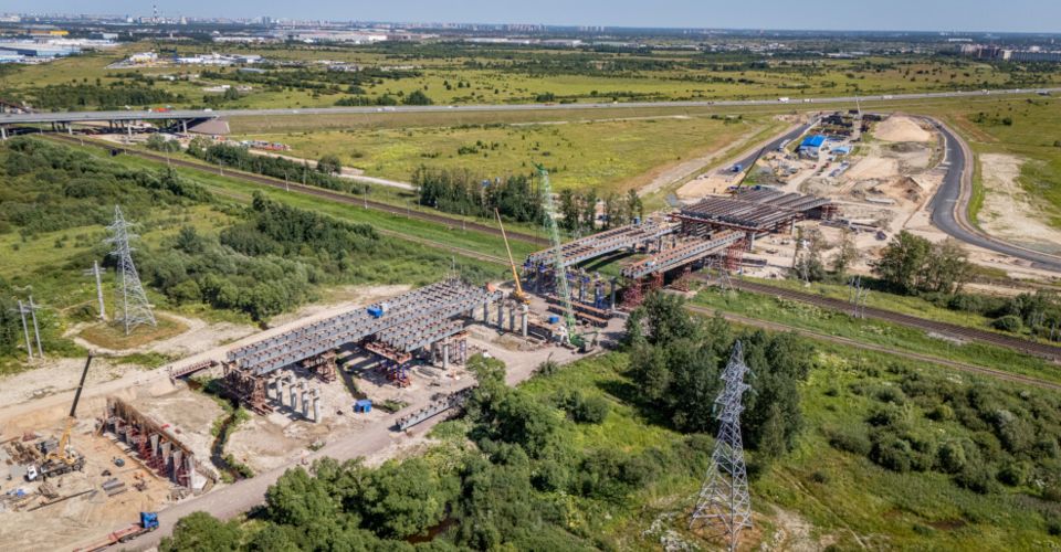 Активно возводятся и два других искусственных сооружения в составе ЮШМ. На путепроводе через ж/д пути Балтийского направления специалисты выполняют бетонирование плит пролетных строений. Для обеспечения дальнейших работ доставлено 3 тысячи тонн металлоконструкций.