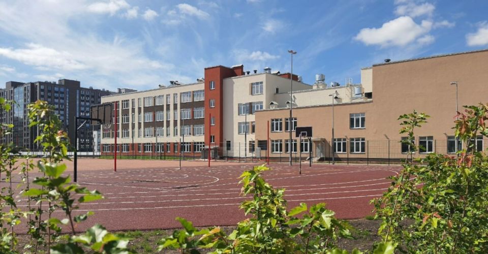 В новой школе есть и традиционный для петербургских школ большой спортивный кластер: два бассейна, просторный оборудованный спортзал, а также стадион с беговыми дорожками и полем для игр в футбол, волейбол и баскетбол на улице.
