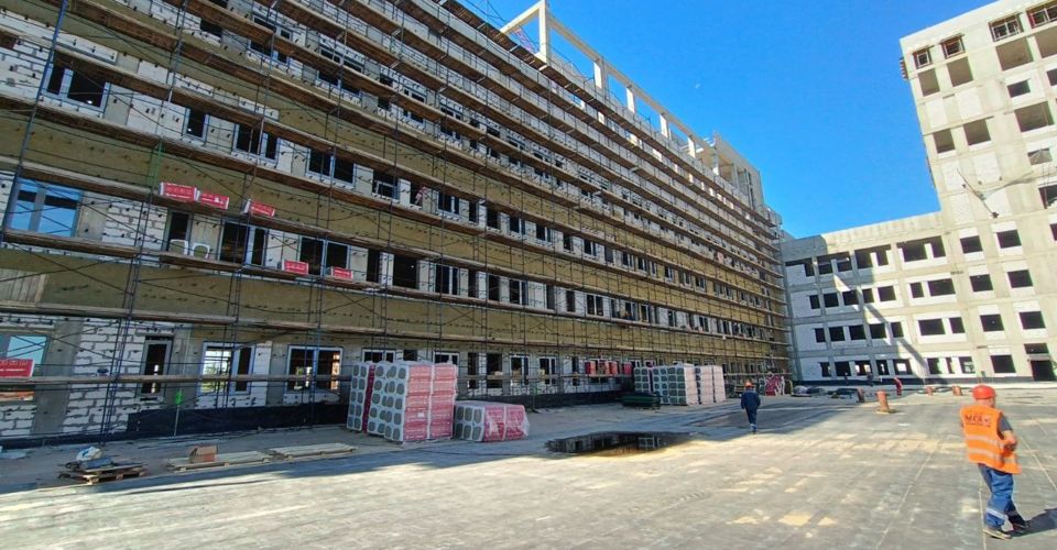 «На главном корпусе монолитные работы завершены на 97%. Ведется кладка стен, монтаж электрических сетей, работы по водоснабжению и водоотведению, работы по устройству "кровельного пирога". Одновременно строители приступили к устройству фасадных конструкций и монтажу оконных блоков. Работы в графике», — поделился министр строительного комплекса Московской области Александр Туровский.