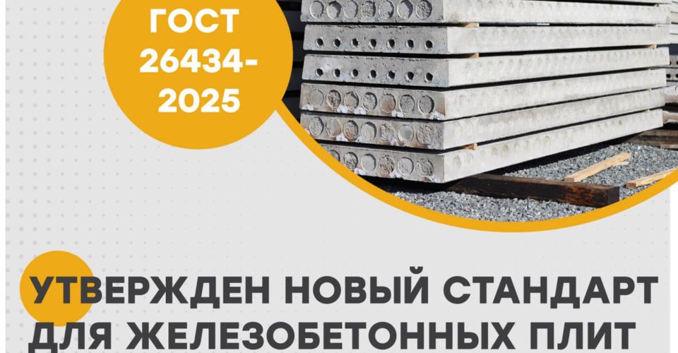 ГОСТ 26434-2025 «Плиты перекрытий железобетонные для жилых зданий. Типы и основные параметры» вступает в действие с 2026 года.