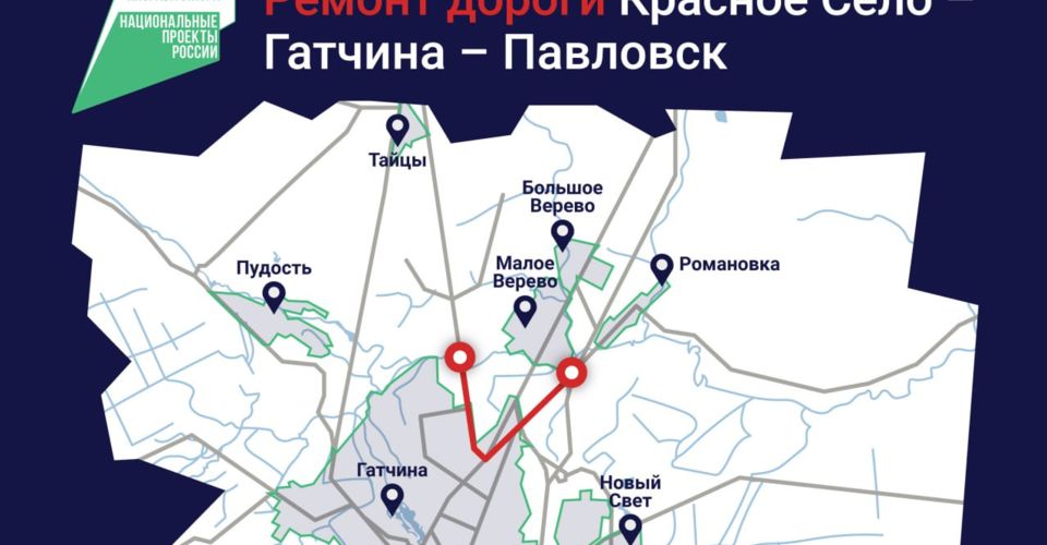 В Гатчинском муниципальном районе стартовали ремонтные работы – на участке дороги Красное Село – Гатчина – Павловск протяженностью более 6 километров (затронет часть Красносельского и Пушкинского шоссе). Обновление проходит в рамках национального проекта «Инфраструктура для жизни».