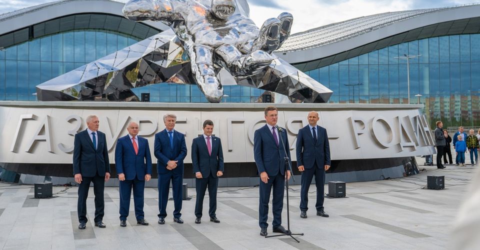 Александр Новак принял участие в торжественном открытии монумента «Газ Уренгоя – Родине!» на центральной площади Нового Уренгоя и поздравил присутствующих с наступающим Днём работников нефтяной и газовой промышленности. Памятник в виде раскрытой ладони с горящим в её центре пламенем возведён в честь газовиков-первопроходцев и разработчиков Уренгойского газоконденсатного месторождения. В церемонии также приняли участие полномочный представитель Президента в Уральском федеральном округе Артём Жога, губернатор Ямало-Ненецкого автономного округа Дмитрий Артюхов, председатель правления ПАО «Новатэк» Леонид Михельсон, заслуженные работники нефтяной и газовой промышленности ЯНАО, ветераны отрасли, студенты и общественные деятели.