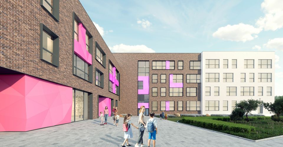 Здание с алюминиевыми декоративными панелями в виде цветного картона с заломами построят рядом с жилым кварталом «Белый Град» от девелопера Ingrad (приобретён Sminex в 2024 году). Архитектурно-градостроительный облик школы согласовала Мособлархитектура. Образовательное учреждение площадью 18,6 тыс. кв. м рассчитано на 55 классов, или 1335 учеников.