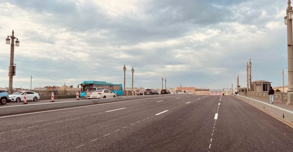 На Благовещенском мосту завершились ремонтные работы. Они проходили поэтапно, без закрытия движения - сначала на полосах, ведущих с Васильевского острова в центр, затем в обратном направлении. Для автомобилистов и пользователей общественного транспорта всегда оставалось 4 полосы движения - по 2 в каждую сторону.