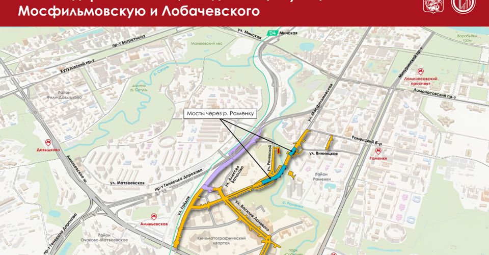 Дороги в Раменках начали строить в марте 2023 года. Проект предусматривал продление ул. Мосфильмовская от Раменского бульвара до ул. Гайдая и Алексея Баталова (по прямой – около 1,7 км) с организацией движения по четырем полосам и возможностью выезда на Южную рокаду – Аминьевское шоссе и ул. Лобачевского.