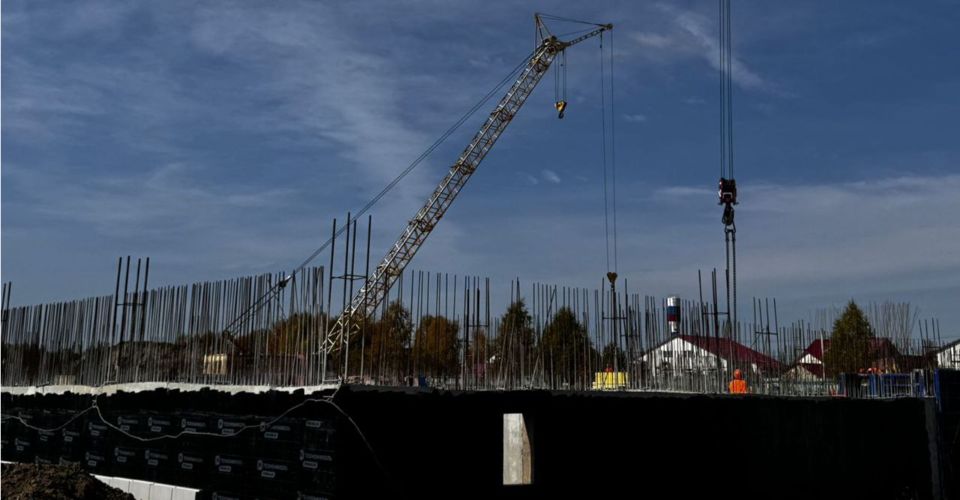 В настоящий момент строительная готовность объекта составляет 15%. На площадке ведут работы по устройству опалубки колонн и перекрытия цокольного этажа, вязке арматурных каркасов, бетонированию стен и перегородок. В строительстве задействовано 43 человека и 5 единиц техники.