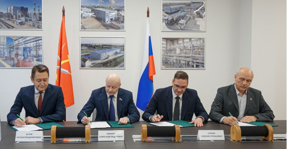 В Тульской области подписаны меморандумы о взаимодействии и сотрудничестве по вопросам обеспечения экологической безопасности на территории Новомосковска. Соглашения заключили заместитель председателя Правительства Тульской области ‑ министр сельского хозяйства, природных ресурсов и экологии Тульской области Алексей Степин, глава администрации муниципального образования город Новомосковск Руслан Бутов, председатель Тульской региональной общественной организации «Экологическая защита» Вадим Баранов и генеральные директора ООО «Полипласт Новомосковск» Александр Ковалев, ООО «Промтехнопарк» Максим Ильин.