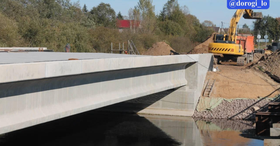 Под Гатчиной на завершающей стадии находится капитальный ремонт моста через реку Ижора. Пролетное строение готово – сейчас идет укладка асфальта.