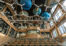 «Новая школа площадью около семи тысяч квадратных метров воплощает современные стандарты обучения и создает комфортную среду для учеников 1–8 классов. В здании разместили 20 универсальных и специализированных учебных кабинетов, лабораторно-исследовательский комплекс, ИТ-полигон, медиатеку и спортивный зал. При работе над проектом использовали более 80 процентов отечественных материалов. Настоящим украшением школы внутри стало многофункциональное многосветное пространство, декорированное арт-объектами: над залом "парят" макеты планет Солнечной системы, выполненные из стеклопластика и композитной арматуры. Эти материалы обеспечат долговечность и устойчивость к деформации. Каждый шар диаметром от 2 до 3,5 метра расписан вручную с использованием керамики и покрыт защитными составами», – рассказал Алексей Александров.