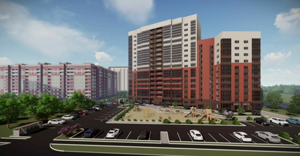 Кирпичный дом возводится на участке площадью 8 тыс. кв. м. На придомовой территории предусмотрена парковка на 105 мест. Также на ней обустроят детскую и спортивную площадки. Зданию присвоен класс энергоэффективности D.